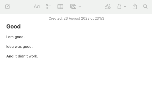 And the shorthand notes or late-night emails were meant to be breadcrumbs I could return to should I forget. I thought these were a huge epiphany and of significant value then. (I rarely found them super-valuable or at least actionable the next morning.)